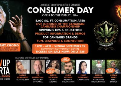 Don’t miss out on this unique opportunity to connect with the cannabis community, gain valuable insights, and have a fantastic time. Get your tickets now and join us for a memorable day at Grow Up Alberta Consumer Day!