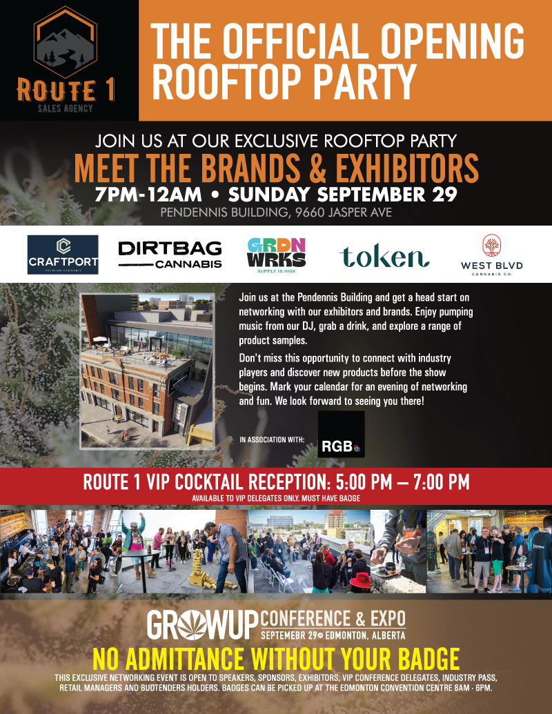 Meet the Brands and Exhibitors at our exclusive Rooftop Networking Party. Come join Route 1 for food and cocktails on the roof-top patio at the Pendennis Building for a night of mingling and networking including a DJ, finger foods and great company. A great way to kick off Grow Up.