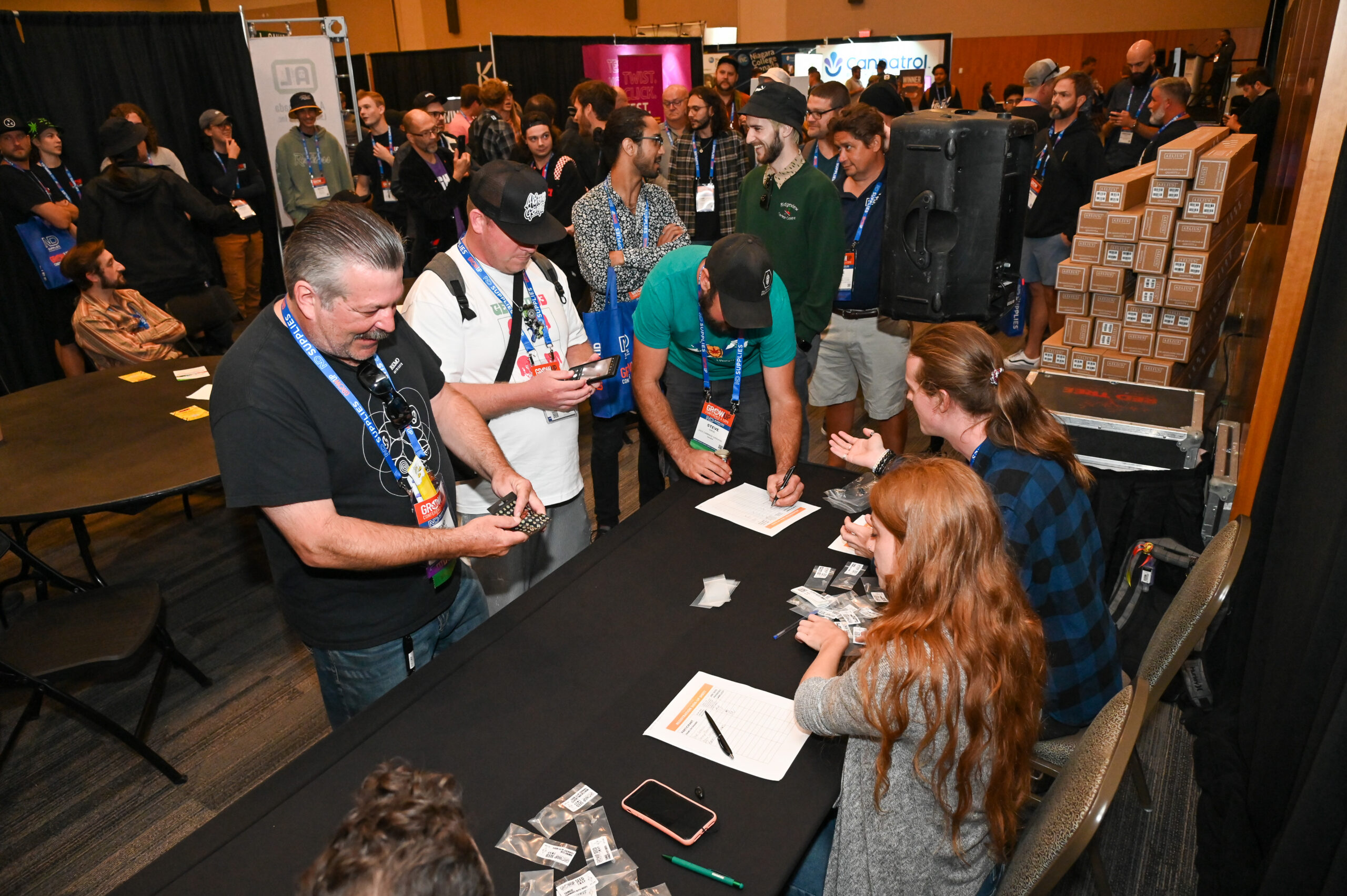 2022. Attendees lines up for the Grow Up Seed Exchange in Niagara Falls, ON to get their complimentary seeds provided by 4Plants Canada.  The Seed Exchange and the Breeders and Phenohunter round table was one of the highlights of the event. Photos ©2022 Dominic Chan