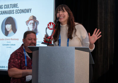 Jodie Giesz-Ramsay, publisher of Cannabis Culture, was honoured for more than two decades of advocacy, media leadership, and civil liberties work that amplified cannabis reform nationally and internationally.